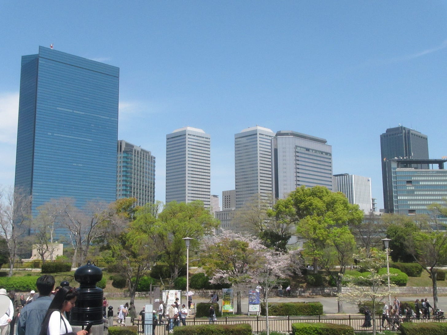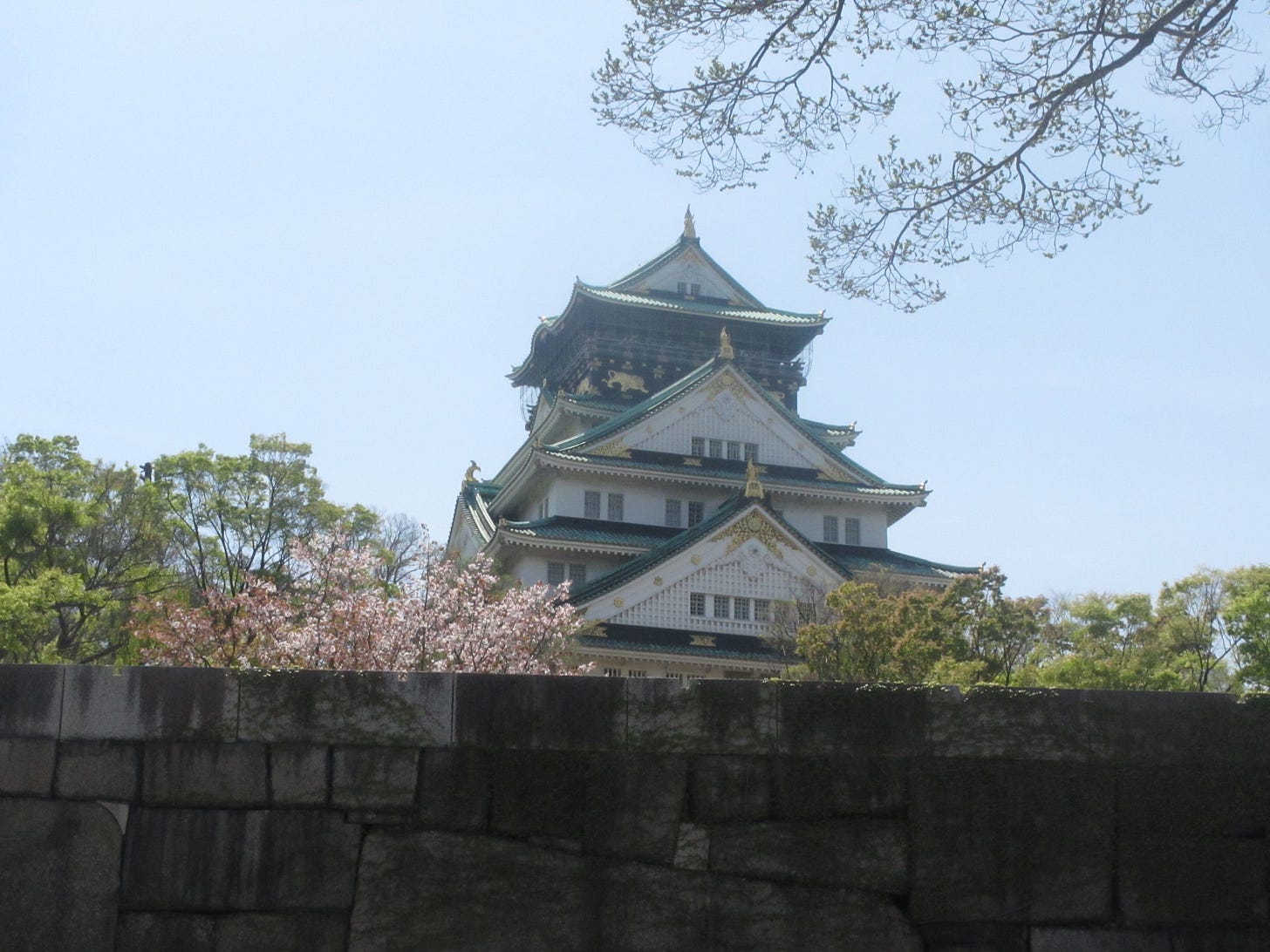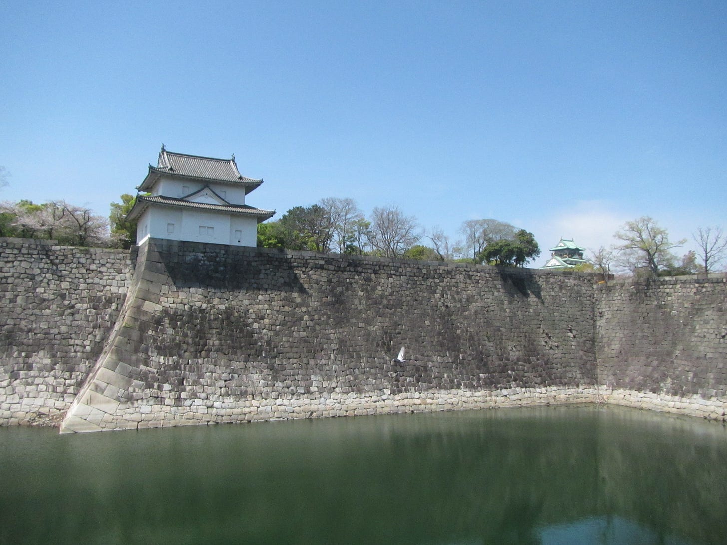 A short distance northwards I reached the outer moat of Ōsaka Castle. The cherry blossom season was coming to an end, but lots of people were still eating and drinking on mats. Almost nothing remains of the castle Hosokawa knew, as it was completely rebuilt in the 1620s. The keep then burnt down after being struck by lightning in 1660, and most of the other buildings were destroyed in fighting in 1868 and the bombing in 1945. The present keep is a ferroconcrete replica (only 12 Japanese castles have the original keep), but visitors don’t seem to mind. The only 17th-century buildings are two of the turrets on the walls.
