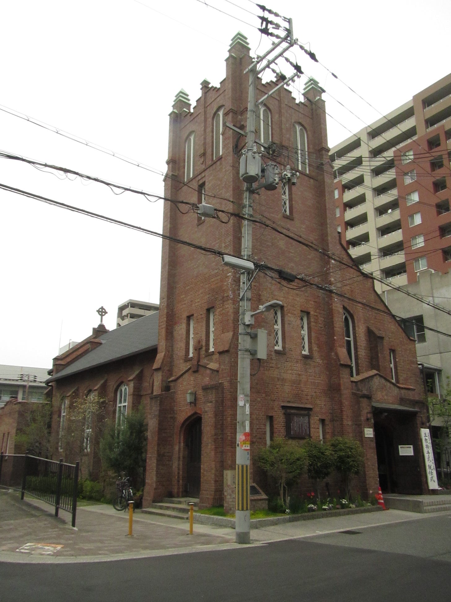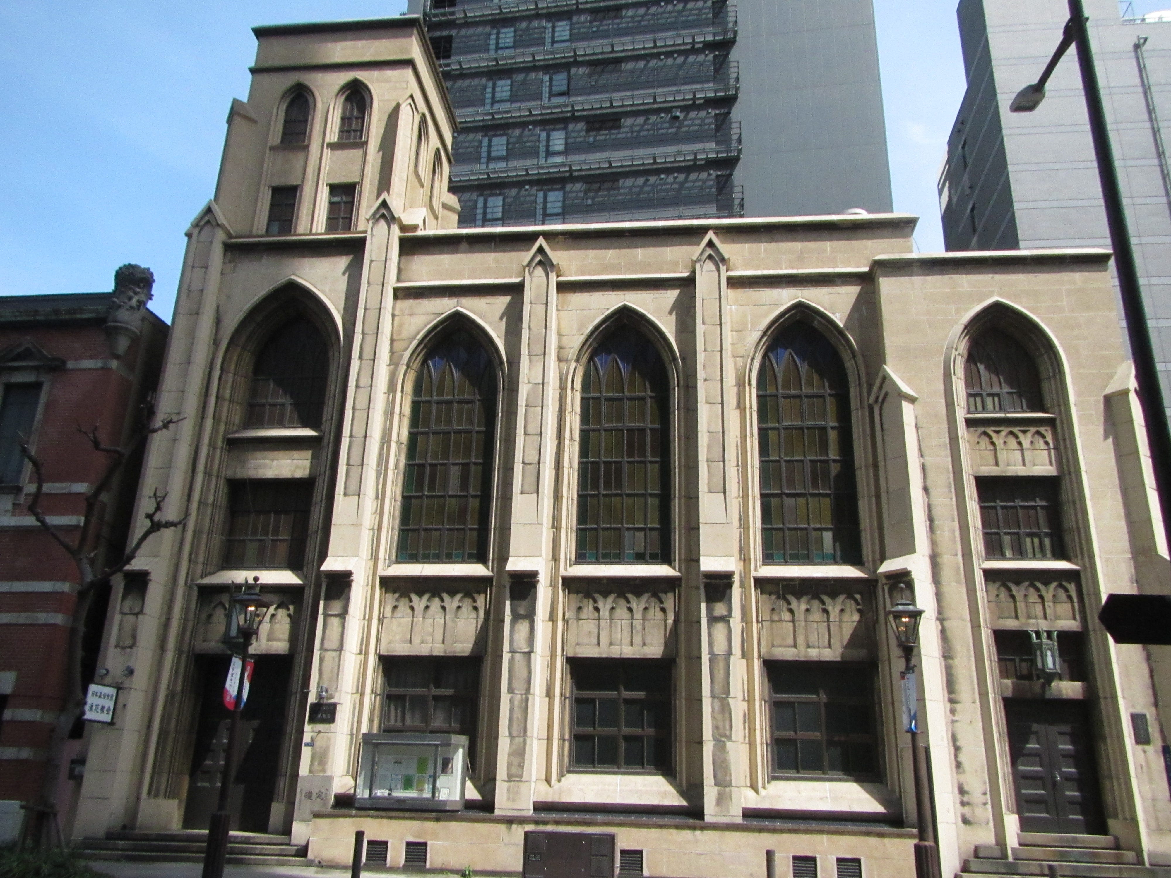 The first church was Naniwa Church, of the United Church of Christ in Japan (UCCJ). Built in 1930, I found it a rather dull neo-Gothic building, but it was designed by the US architect William Merrill Vories (1880–1964), who I’ve mentioned in other articles. He designed dozens of churches, so that my first thought on seeing a pre-war Protestant church is that it must be his. Besides his architecture firm, he started his own drug company, and became extremely rich, but lived a modest lifestyle, using his wealth to fund hospitals and missionary work. In 1941, he took Japanese citizenship, adopting his wife’s surname, and he was involved in the surrender in 1945; it was he who recommended that the Emperor renounce claims of divinity.