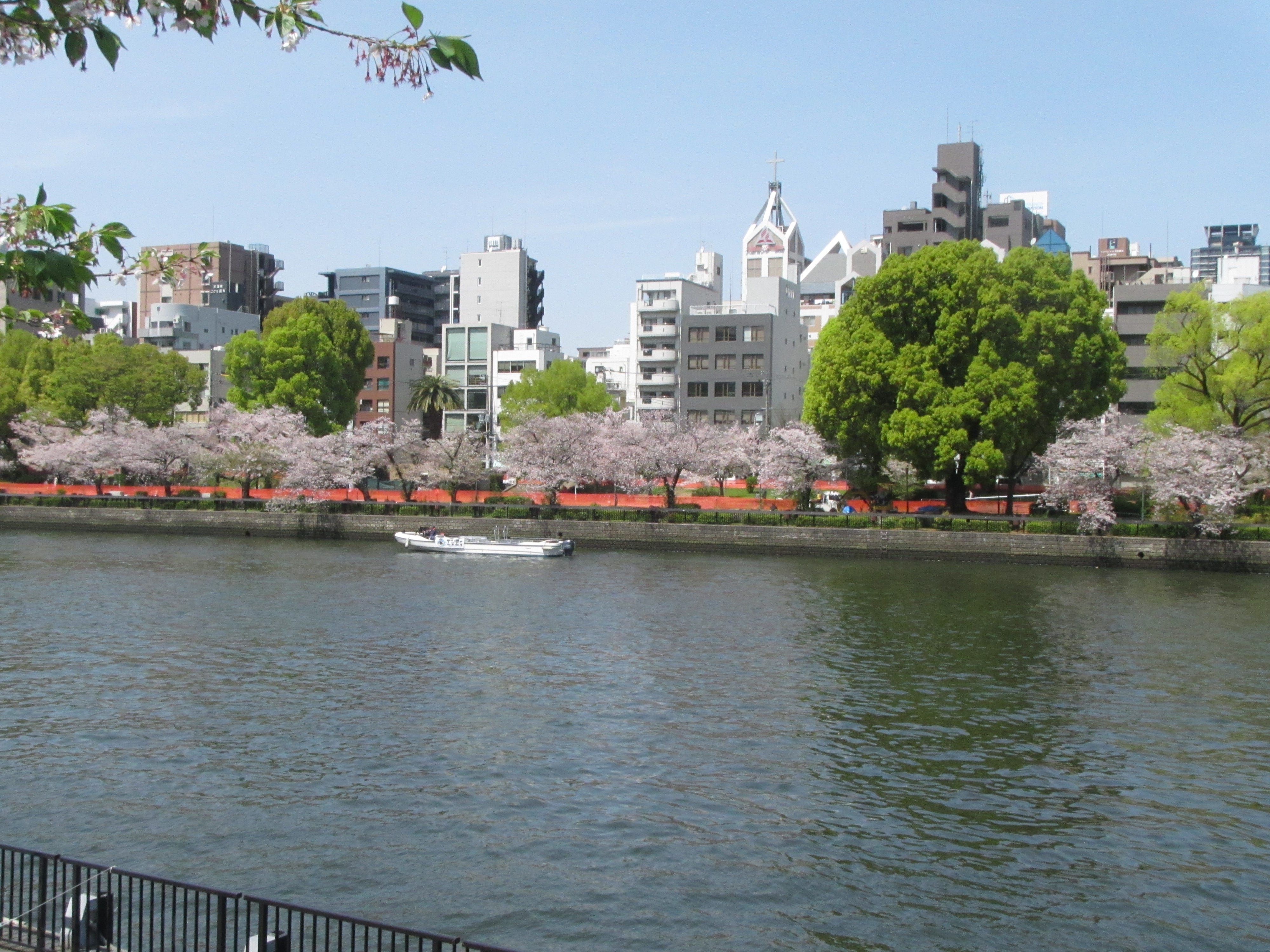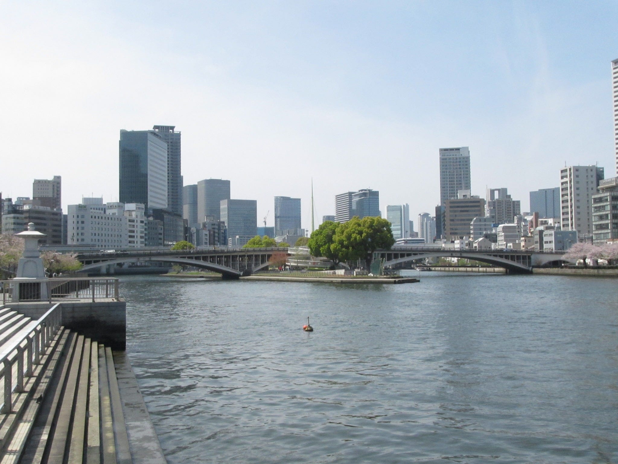 The river divides to either side of Nakanoshima (“Middle Island”), which is the administrative centre.