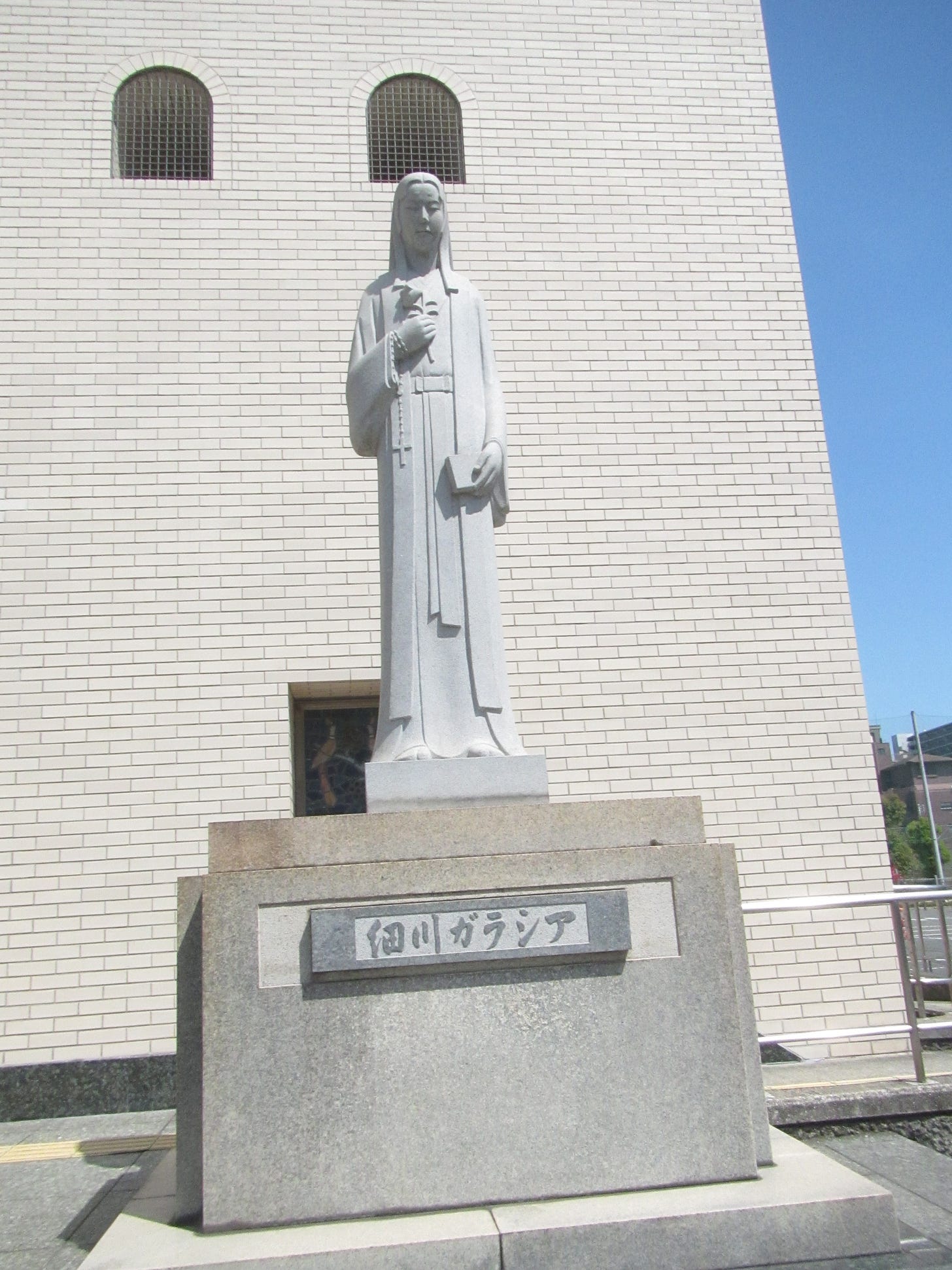An odd coincidence is that the cathedral was built adjacent to and overlapping with the site of the Hosokawa mansion. Perhaps for this reason, the cathedral is dominated by memorials to Takayama Ukon and Hosokawa Garasha.
