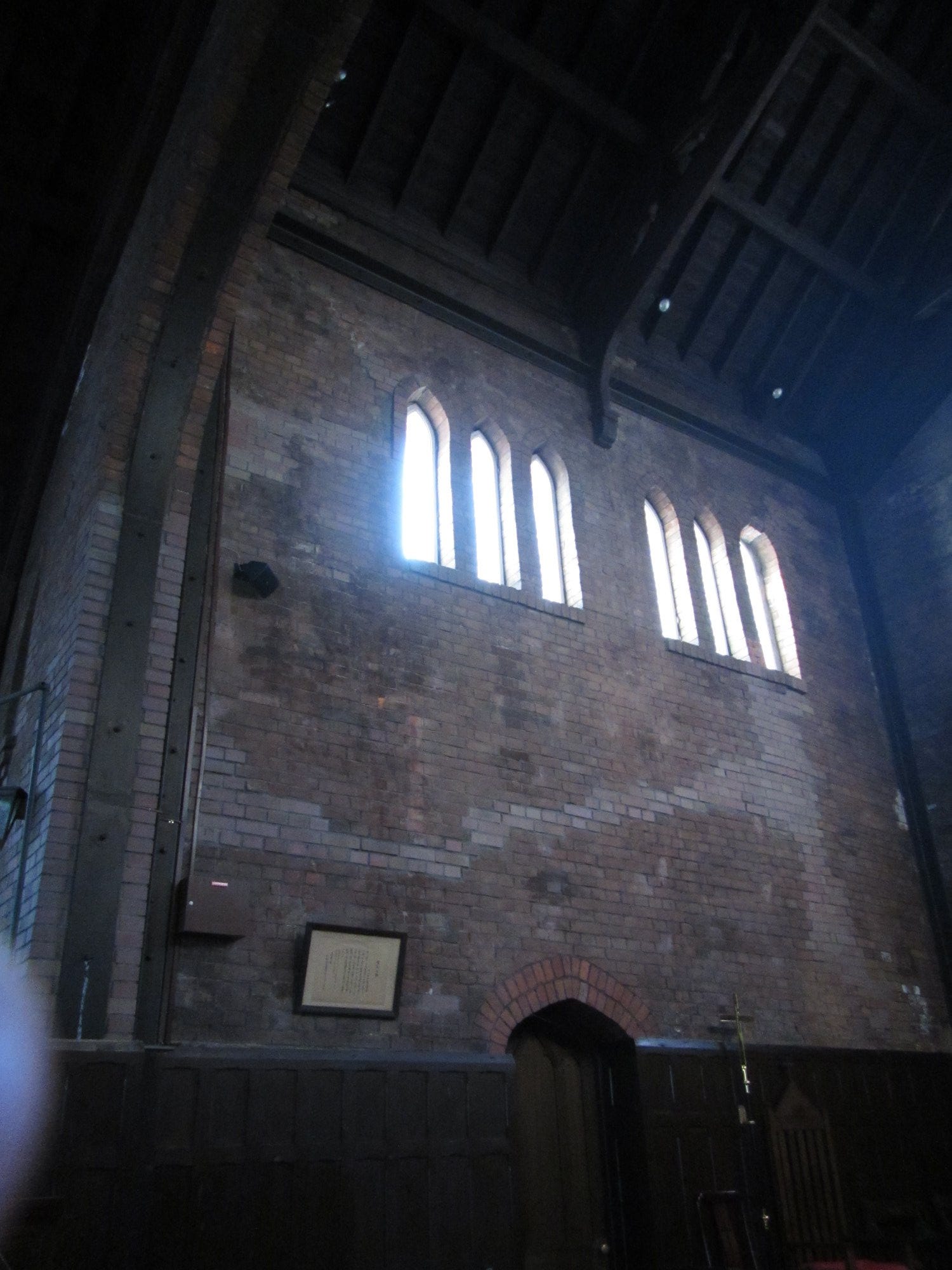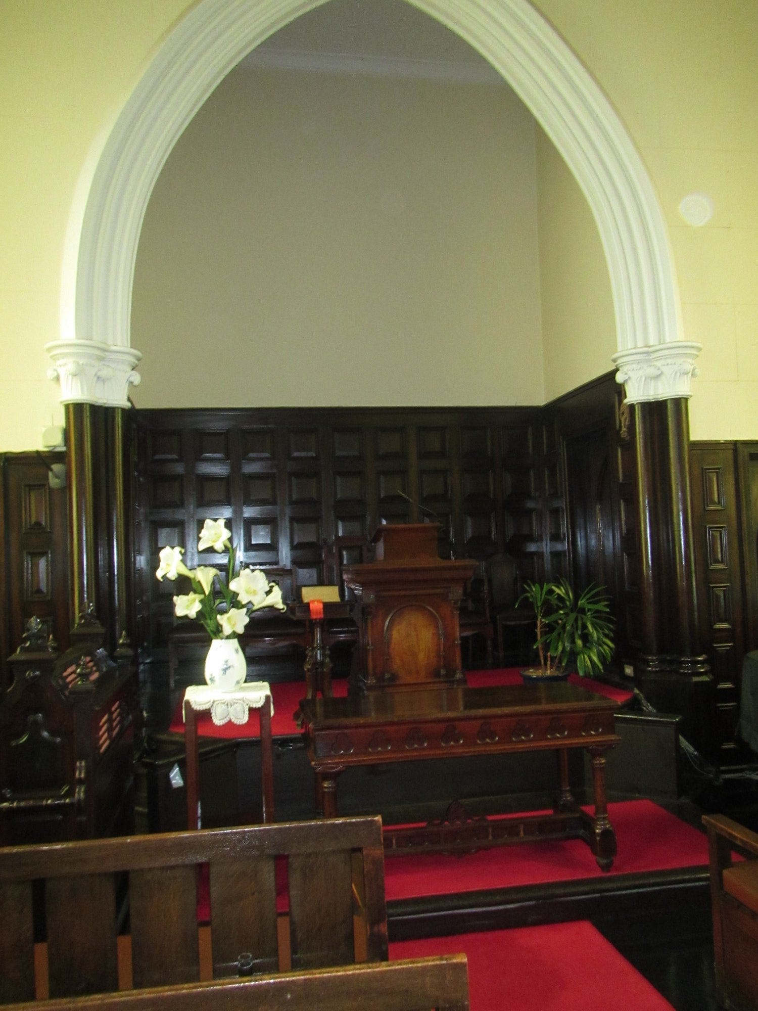 The UCCJ was created in 1941, when the government forced all Protestant denominations to merge into one patriotic church, and most remained merged when allowed to separate again after 1945. Naniwa Church was originally Congregationalist, founded with 11 members in 1877, and is said to have been Japan’s first church to run without overseas funding. The interior has fine, dark-timber panelling, attractive in a sombre sort of way, looking very much how I, being northern English, think of Nonconformist “chapels”; I remember hearing Anglicans mock “pitch-pine piety”.